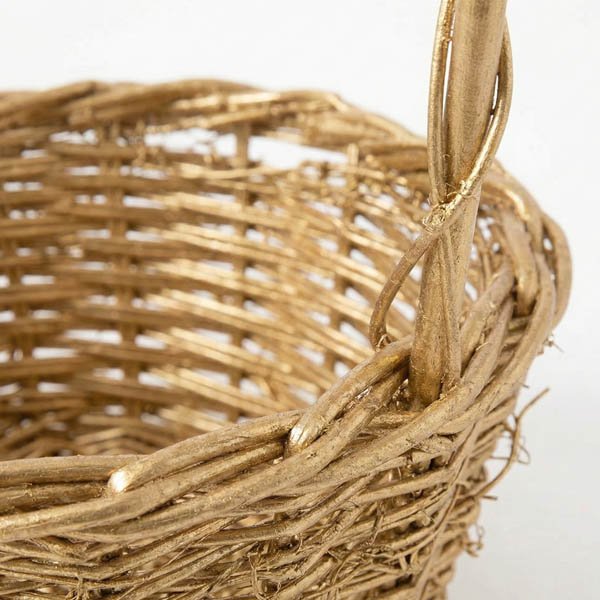 - Metallic Gold Finish: Elevates the basket from simple rustic to “rustic glam.”